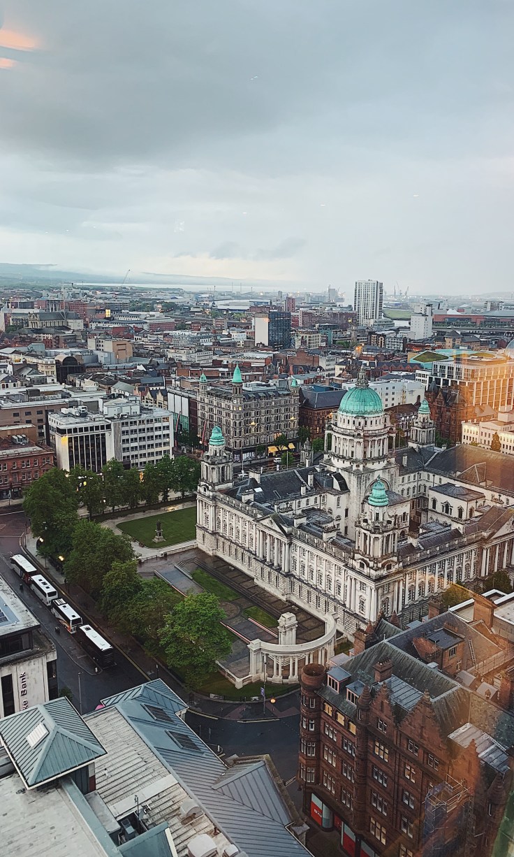 This is a new hotel recently erected in Belfast and is the second tallest building in the whole of Ireland (second to the Obel Tower, also in Belfast). However, it does boast to have the tallest bar in Ireland. The observatory is on the 23rd floor and has the most amazing view of Belfast. It really is spectacular. You will be taken in the elevator by a concierge and taken to a seating area available. Luckily, we had arrived before most others so we could choose where to sit. You can also take a walk around to see the city from every view possible. The seating areas are stunning and very comfortable. The service is lovely, friendly and welcoming staff. The drinks are pricey, for example Β£15 for a cocktail and Β£8 for a pint but to be honest, you get what you pay for. The view is outstanding and I suppose it’s not something you would do every day. It’s a really amazing experience for a special occasion and definitely worth a trip if you are visiting Belfast.
