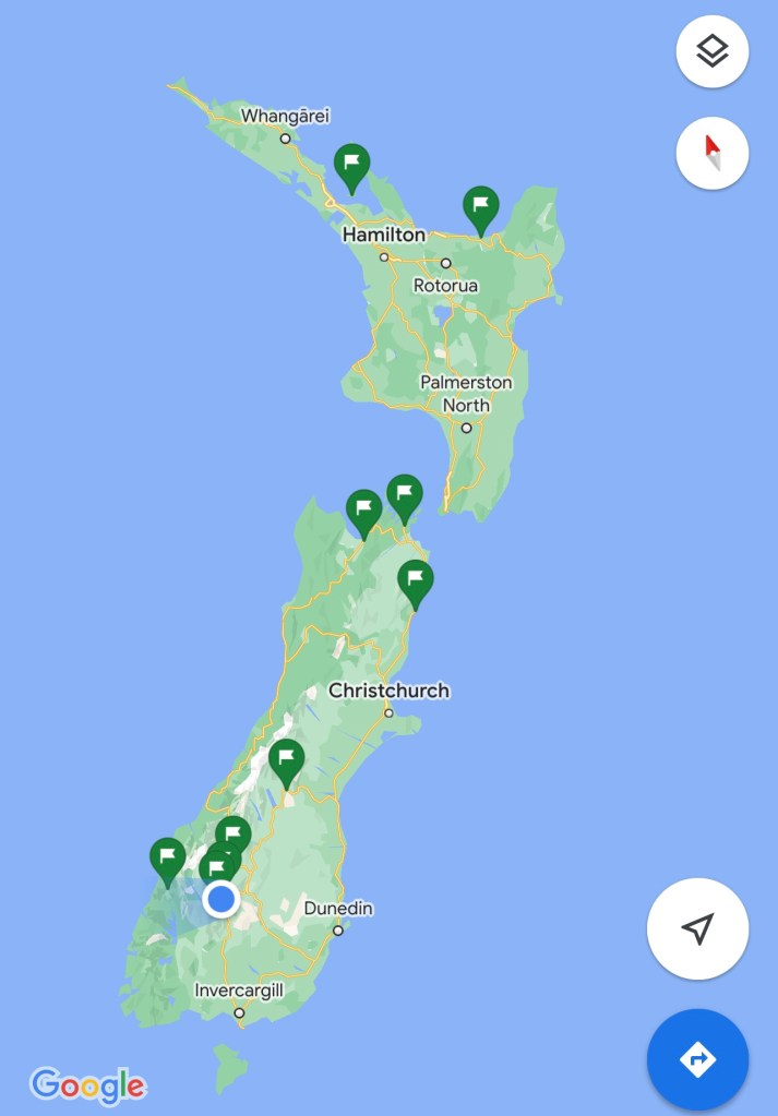 Christchurch is situated in the South Island. You can disregard all those flags, these were some of my points of interest for our trip.