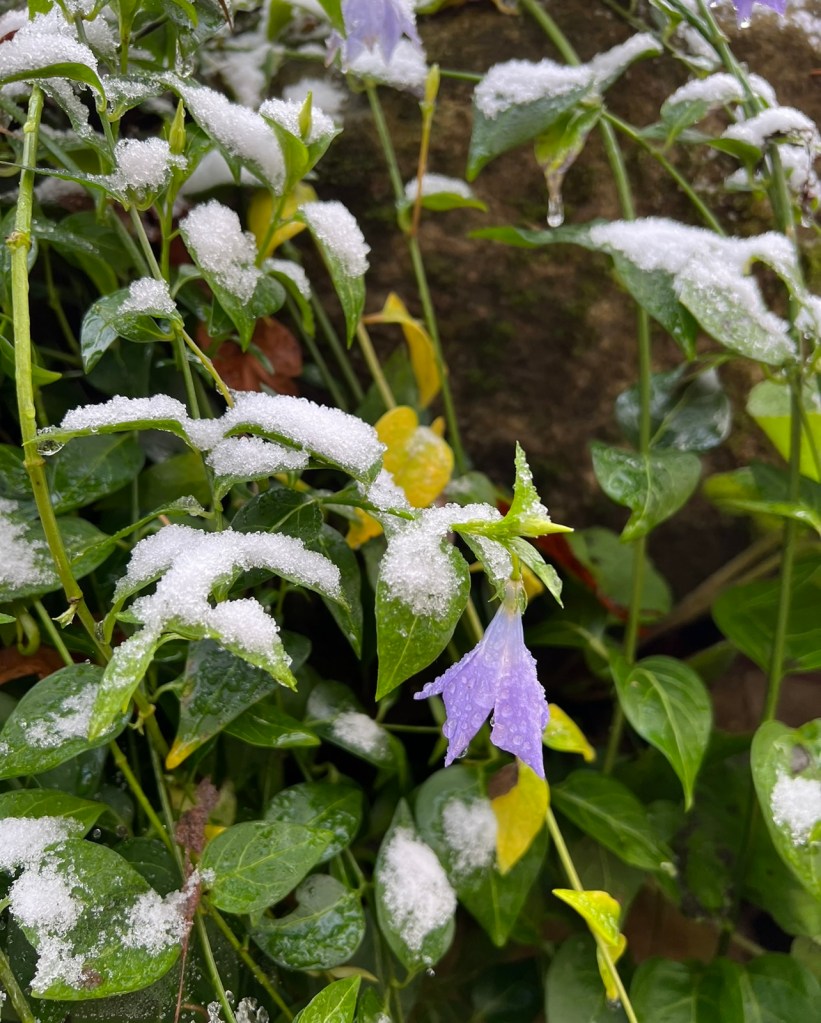 Happy Friday everyone and welcome to my last flower of the day for this year. I can’t believe it’s the 30th of December 2022, however, I will be glad to have this year behind me and focus on 2023. It’s been a tough few months to say the least but I feel like this image below signifies it perfectly. This beautiful lavender periwinkle flower was covered in snow and now it’s slowly thawing out, ready to shine once again.